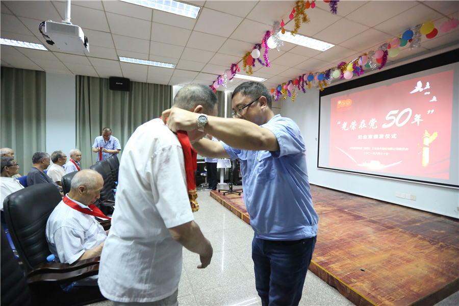 6月30日下午,公司党委在培训大楼党员活动中心隆重举行“光荣在党50年”纪念章颁发仪式。公司党委副书记、总经理谭新民,党委委员、常务副总谭爱平出席颁发仪式;公司党委委员、副总经理邹凡丁主持颁发仪式;公司荣获“光荣在党50年”纪念章的40余名老党员代表参加颁发仪式。